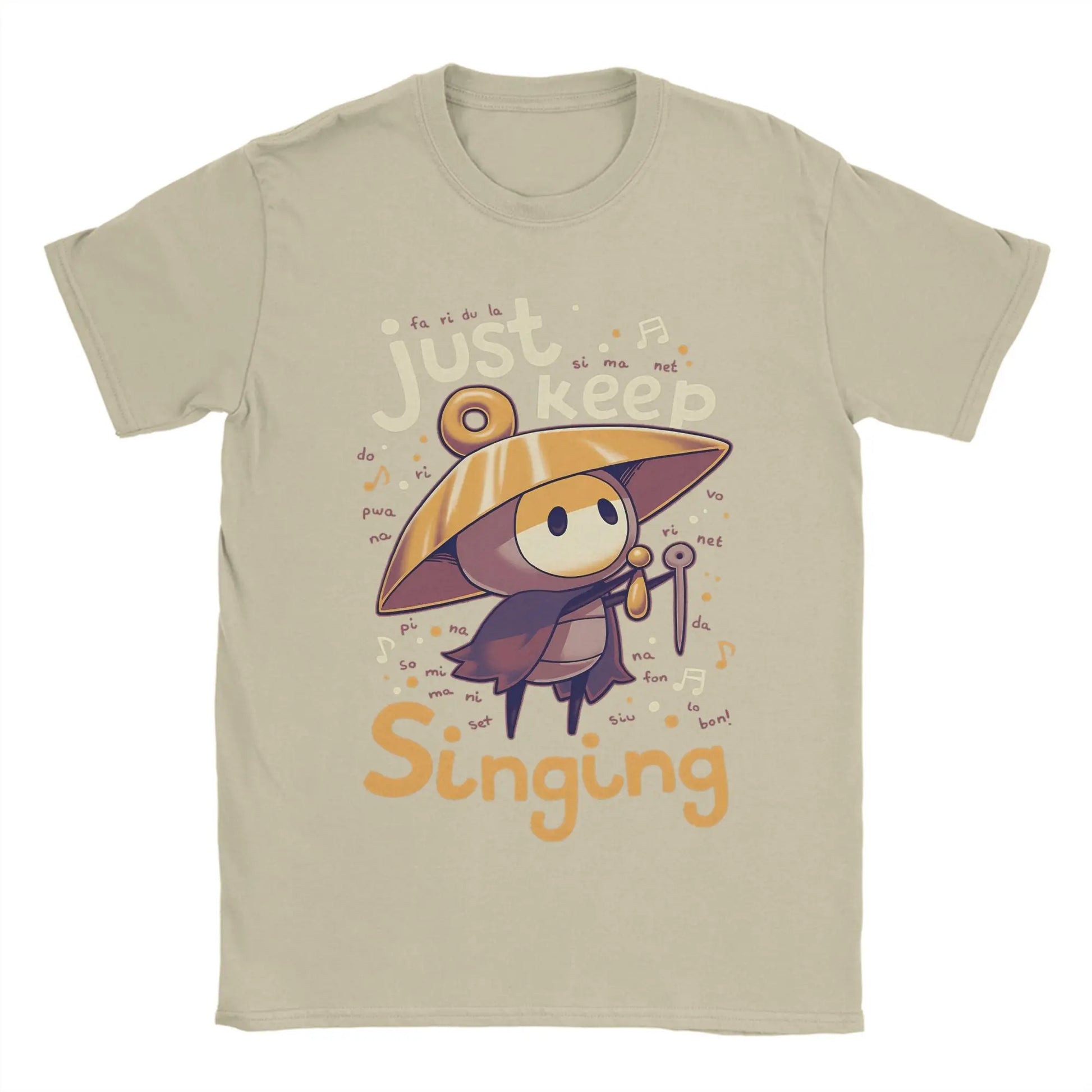 Celebrate the charm of Hollow Knight: Silksong with the Sherma T-Shirt – Just Keep Singing, featuring a playful and heartwarming design of the beloved traveler from Hallownest. Crafted for both comfort and style, this tee is made from soft, breathable cotton and comes in multiple color options, making it a perfect choice for fans who want to wear their love for the game every day.